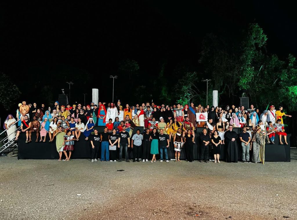 O elenco contou com mais de 130 personagens amadores e voluntários, que se empenharam em retratar a real história da vida, morte e ressurreição de Jesus Cristo.