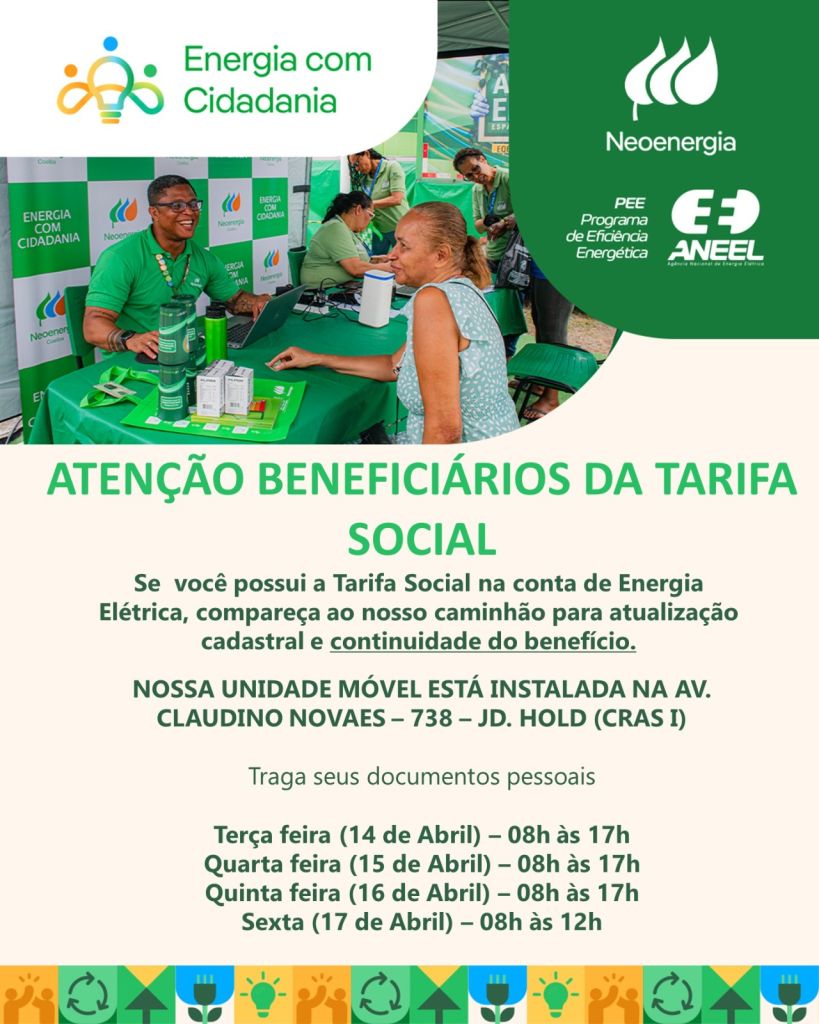 Energia com cidadania em Cajati no CRAS I Inhuguvira de 14 a 17 de abril