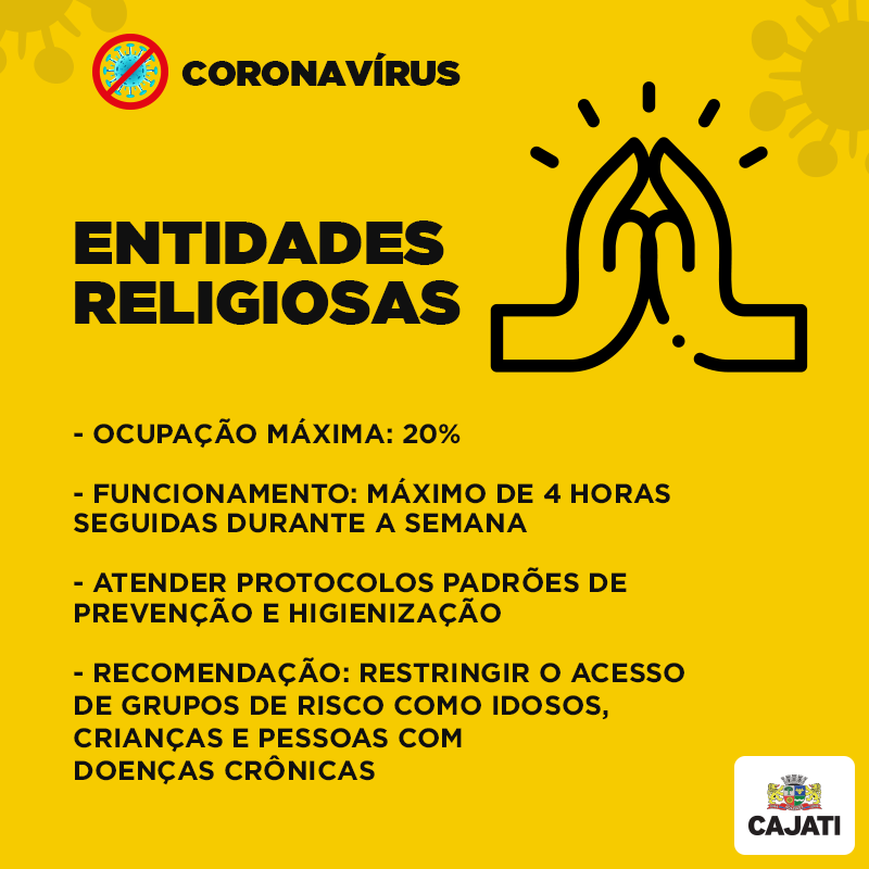 As entidades religiosas de qualquer culto devem seguir as medidas preventivas do Decreto 1.638/2020. Algumas recomendações são: