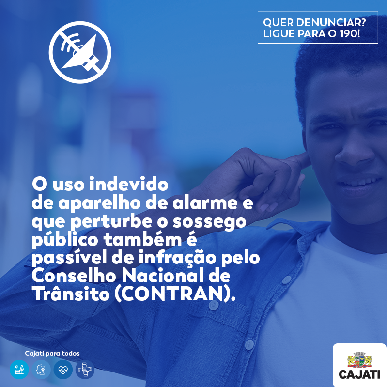 Usar indevidamente o aparelho de alarme no veículo e que perturbe o sossego público também é considerado infração pelo Conselho Nacional de Trânsito (Contran) - Lei 9.503/1997.