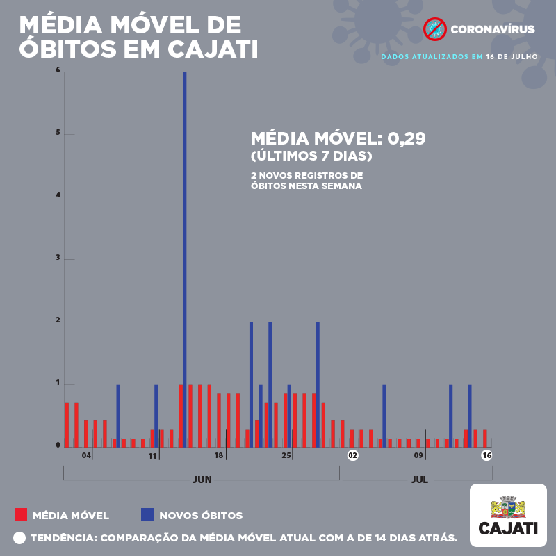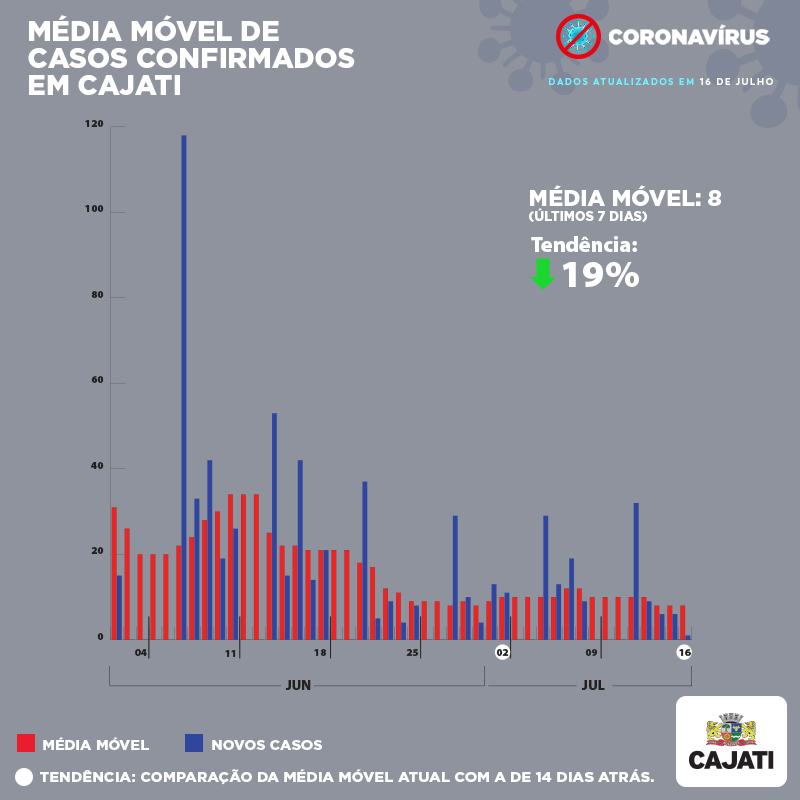 A Prefeitura de Cajati apresenta as médias móveis do Coronavírus desta sexta-feira, 16 de julho.