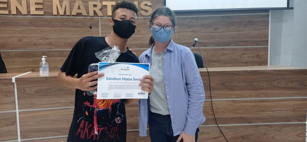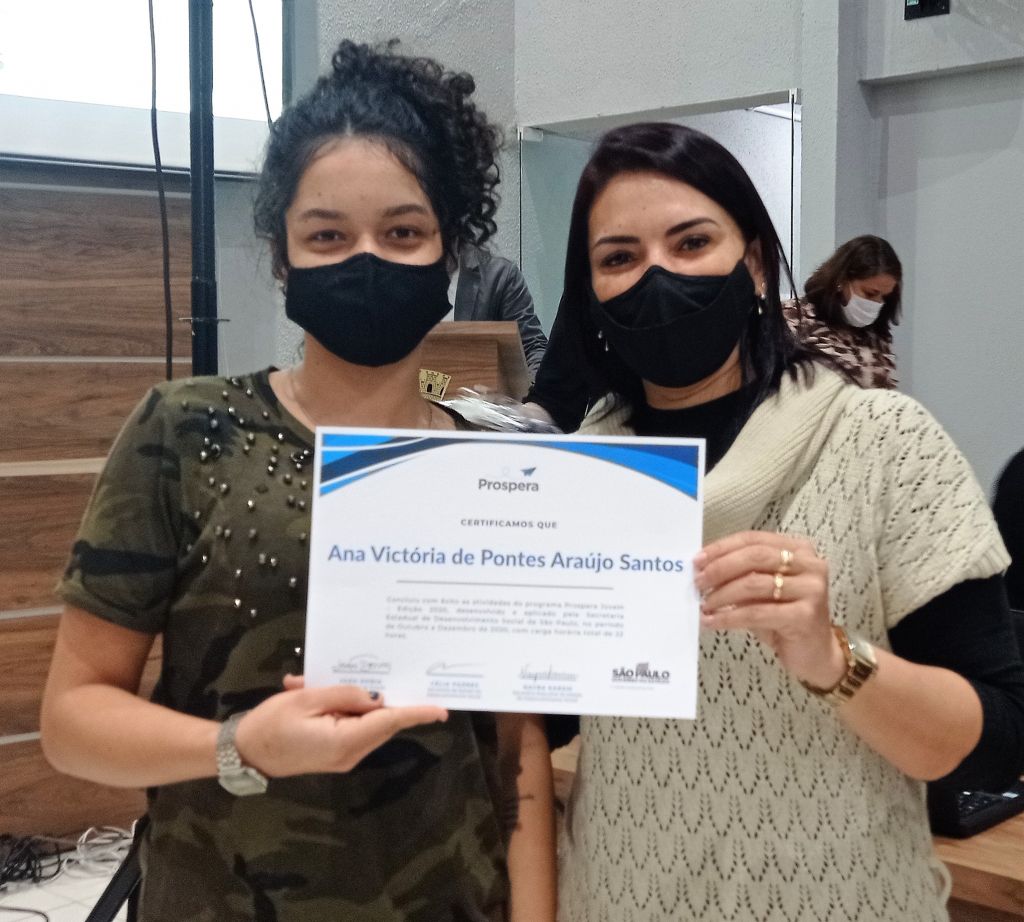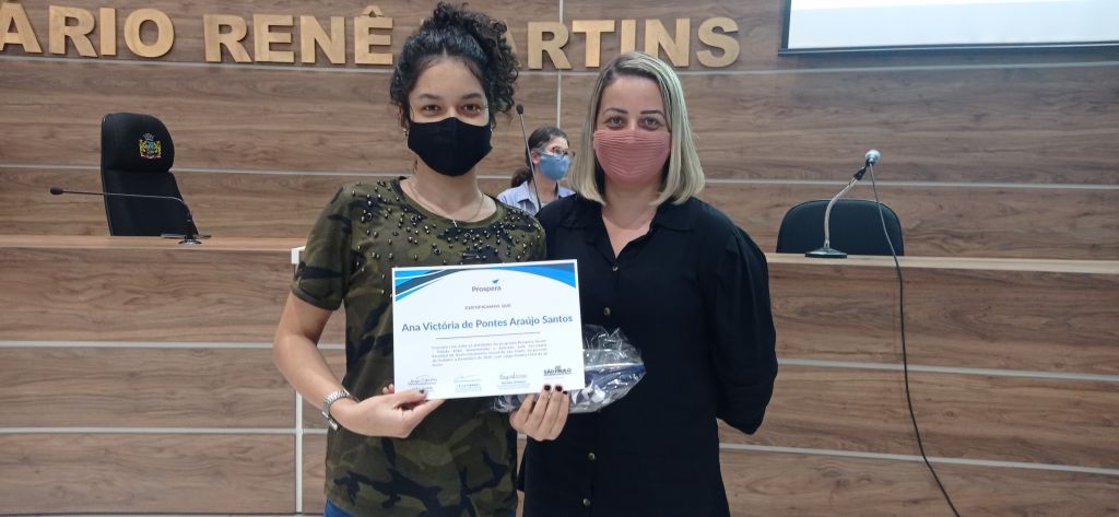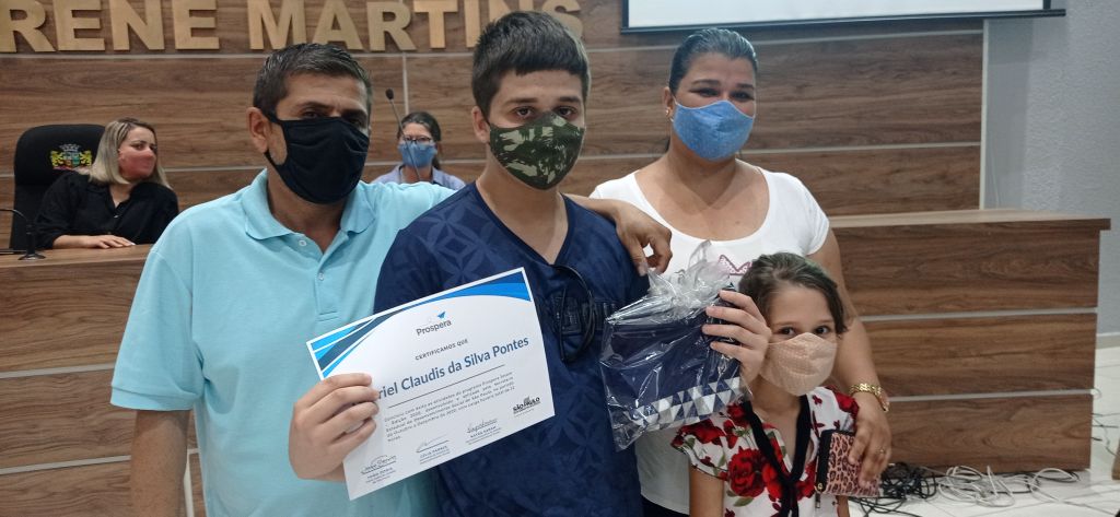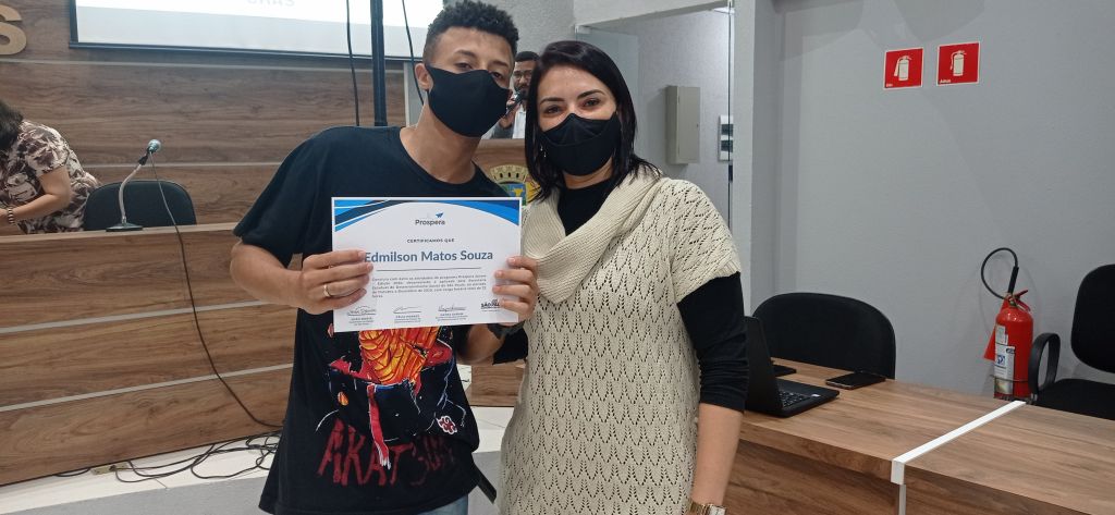 A diplomação da primeira turma do programa Prospera Jovem 2020 do Governo do Estado de São Paulo aconteceu na tarde desta quarta-feira, 18 de agosto no auditório da Câmara Municipal de Vereadores de Cajati. Dos 19 jovens que concluíram o curso, Ana Vitória de Pontes Araújo Santos, Anderson Rodrigues de Souza (que foi representado pela mãe), Edmilsom Marcos Souza, Gabriel Claudis da Silva Pontes e Renata Pereira da Silva estiveram presentes representando a Turma 2020 e receberam um brinde especial e o certificado do curso.