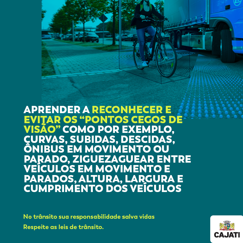 Você sabia que a maioria dos acidentes de trânsito são causados por falta de visibilidade? Na primeira série da Campanha “Ver e ser Visto. No trânsito, sua responsabilidade salva vidas!”, são apresentadas algumas orientações com intuito de gerar a visibilidade no trânsito tanto do motociclista, do ciclista como também do pedestre.