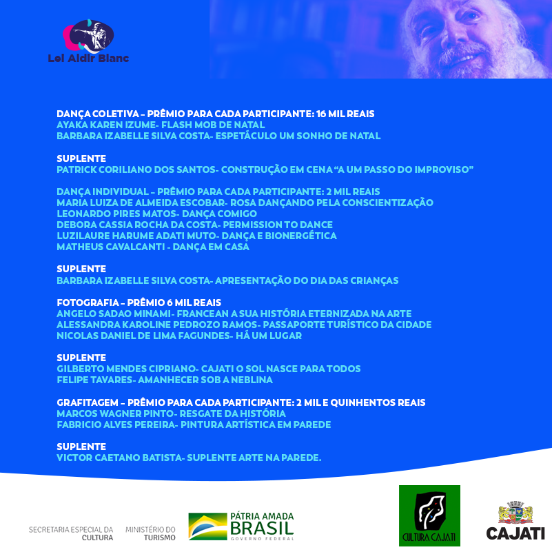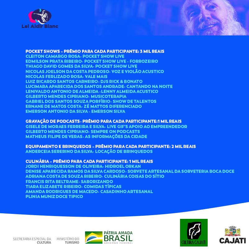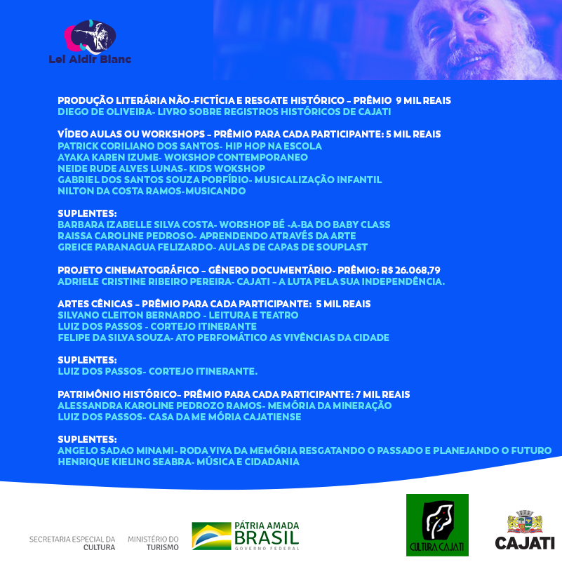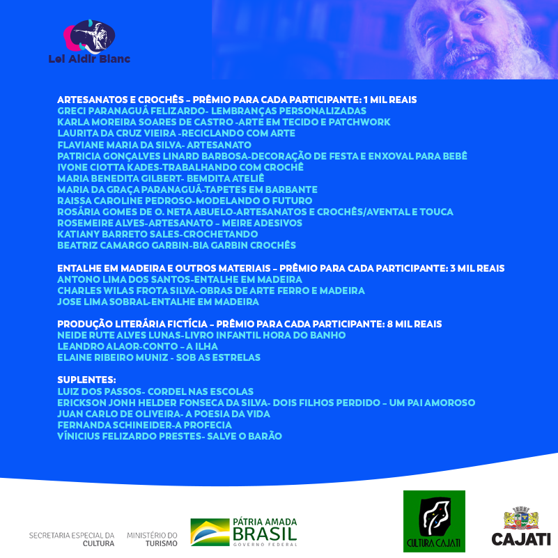 Confira o Resultado Final publicado do “CAJAART” - Premiação Emergencial Lei Aldir Blanc