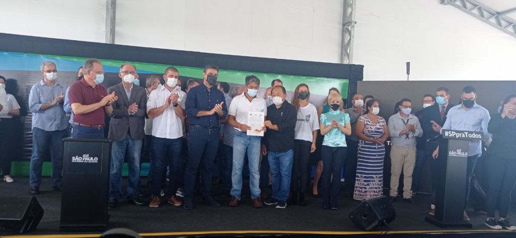 O prefeito de Cajati, Luiz Henrique Koga assinou 170 títulos de domínio, regularização fundiária de interesse social (REURB-S) e interesse específico (REURB-E) para o núcleo urbano do bairro Parafuso nesta sexta-feira, 26 de novembro de 2021, durante a realização do RetomaSP- evento do Governo do Estado de São Paulo.