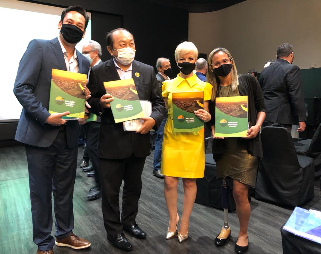 O prefeito Luiz Henrique Koga esteve na última segunda-feira, 13 de dezembro no Palácio do Bandeirantes em São Paulo para participar do lançamento do livro “Vale do Futuro”, juntamente com os vereadores Alexandre Pacheco e Rosângela Rodrigues. Durante o evento a primeira edição da obra foi entregue sem custo a prefeitos, secretários de Estado e demais autoridades, além de pesquisadores e técnicos que tenham envolvimento com o Vale do Futuro.