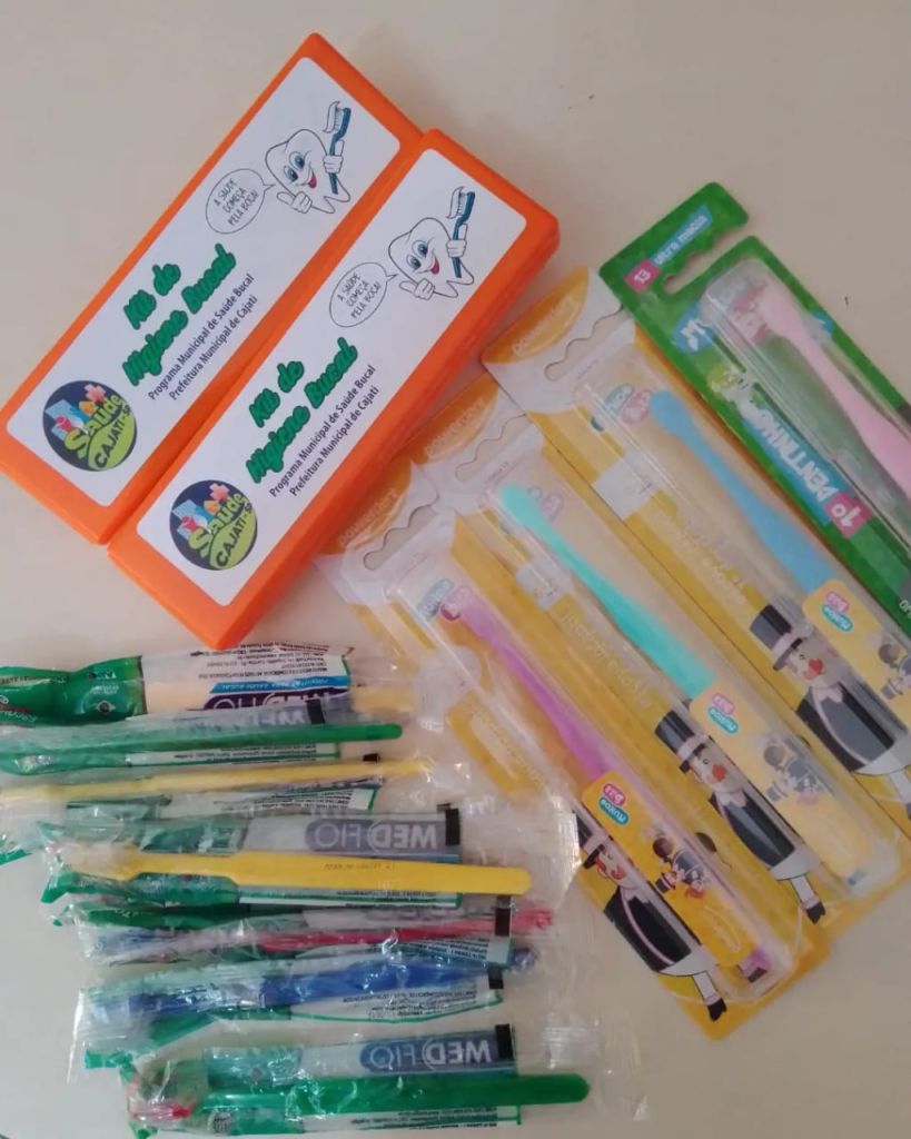 As famílias que participaram da palestra receberam do Centro Odontológico Municipal, um Kit de higiene bucal.