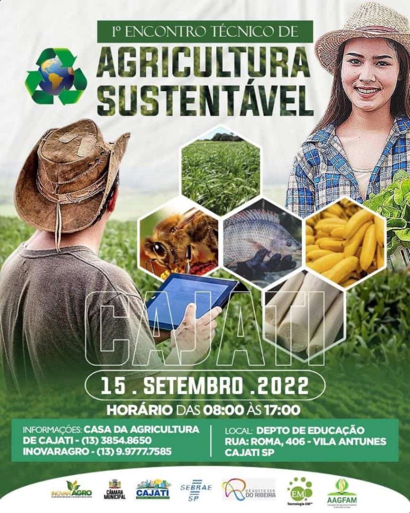 No próximo dia 15 de setembro, das 8h às acontecerá o 1° ENCONTRO TÉCNICO DE AGRICULTURA SUSTENTÁVEL em Cajati no Departamento de Educação e Cultura.