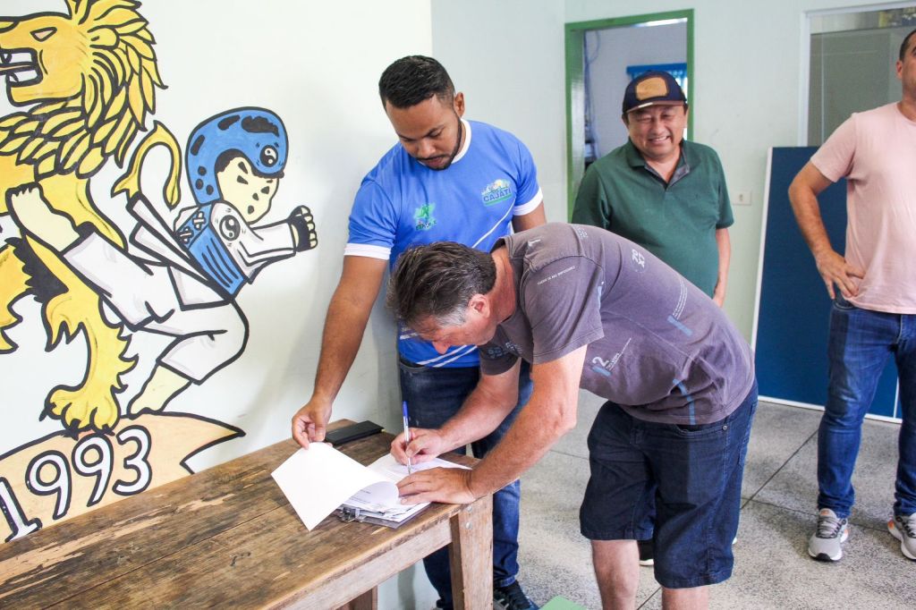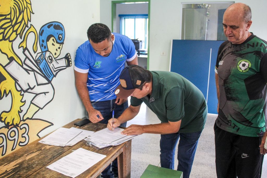 Na manhã desta sexta-feira (24/2), o prefeito Luiz Koga, o vice-prefeito Ronaldo Cantilio juntamente com o diretor do Departamento de Esportes e Lazer, Jainir dos Santos Neves e o chefe da seção da Educação Esportiva, Paulo Henrique Mendes entregaram para as equipes Cinquentão Cajati 1,  representada pelo presidente Jaison Oliveira Neves, uma bola de futebol de campo Penalty azul e branca e 25 camisetas, 25 shorts e 25 pares de meia verde e branca e Juventude Cajati 2 -Cinquentão, representada pelo Clayton Baccin, uma bola de futebol de campo Penalty e 25 camisetas, 25 shorts e 25 pares de meia.
