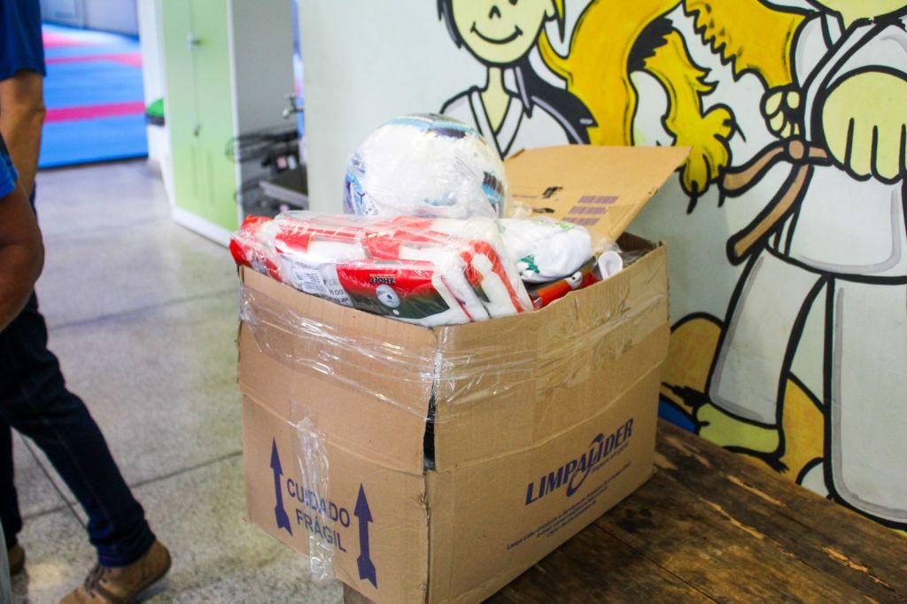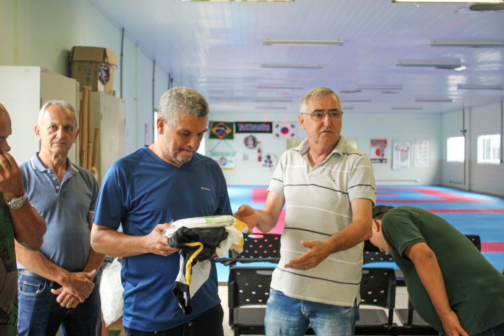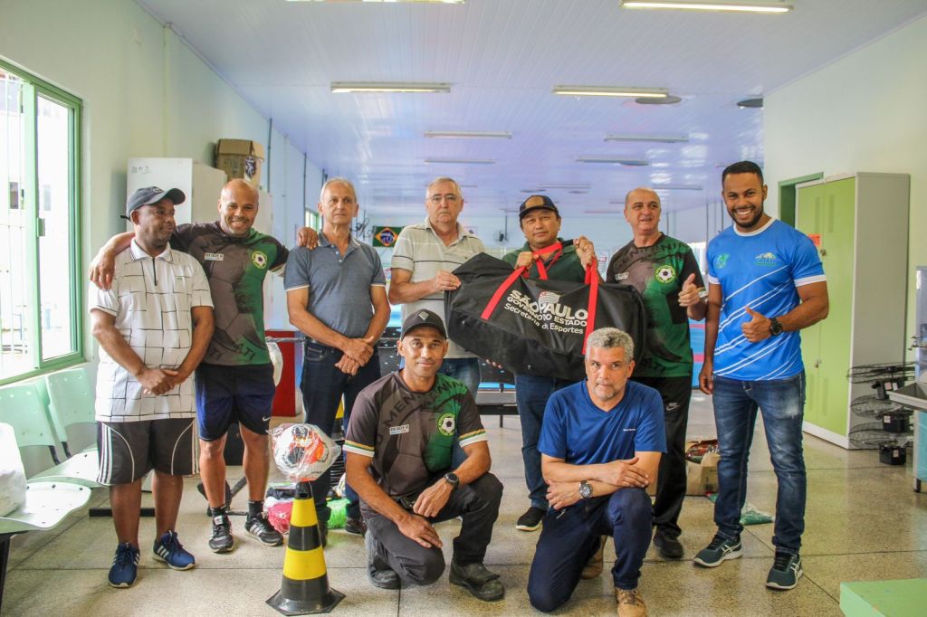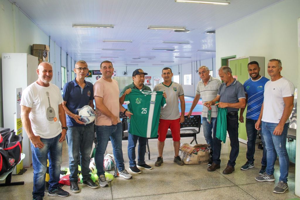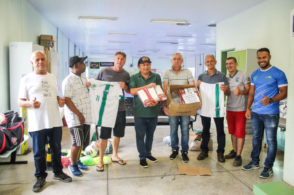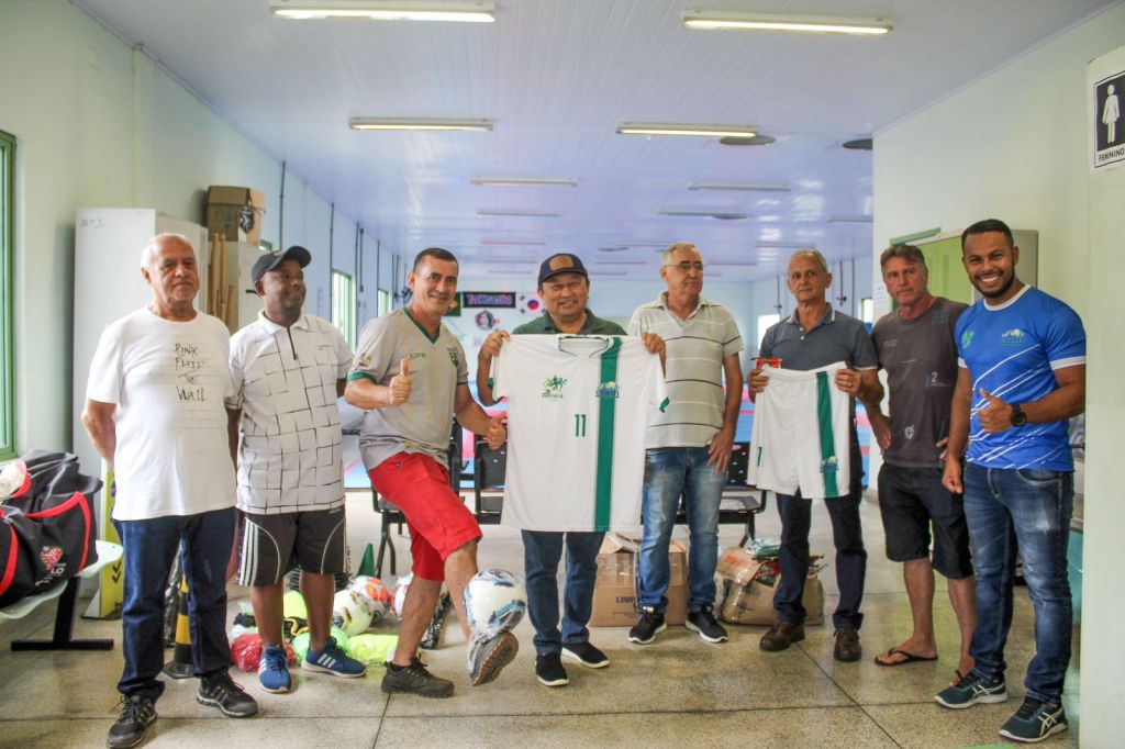As equipes da terceira idade receberam bolas de futebol, 50 camisetas, shorts e meiões
