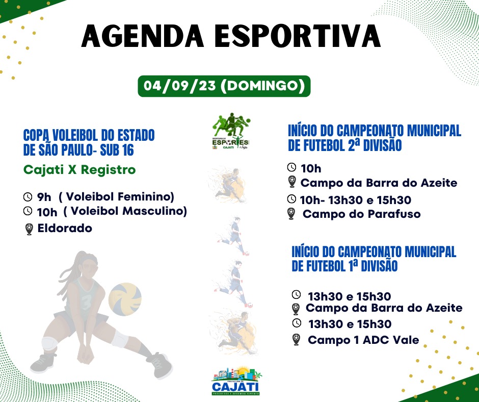 Confira a agenda esportiva deste final de semana da Secretaria de Esportes e Lazer de Cajati