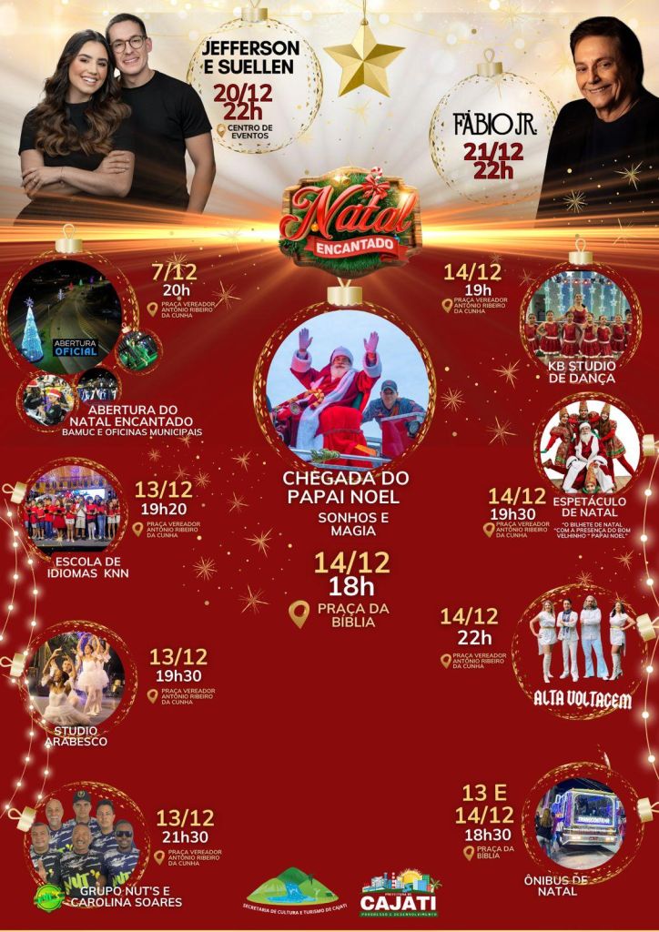 O "Natal Encantado" de Cajati promete ser um evento memorável, repleto de entretenimento para toda a família. Com diversas atrações, desde apresentações de dança a shows musicais de renome, a cidade se prepara para celebrar o espírito natalino da maneira mais encantadora possível.