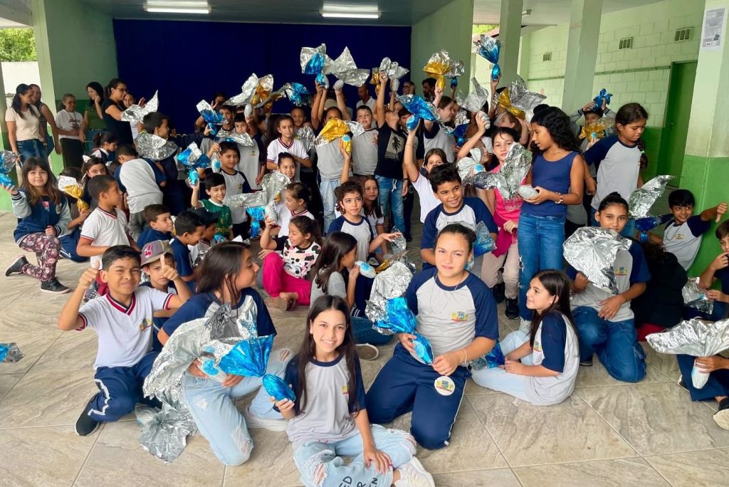 A distribuição de ovos de chocolate foi realizada para cerca de 3 mil alunos da Educação Infantil e Ensino Fundamental (até o 5º ano), de toda a rede municipal.
