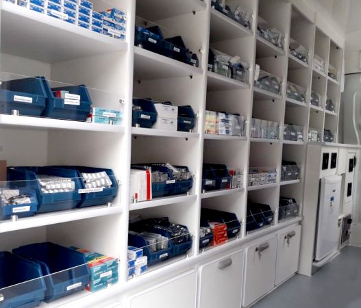A Farmácia Móvel é uma estrutura sobre quatro rodas, que funciona de acordo com as exigências da Vigilância Sanitária para o fornecimento de medicamentos. É equipada com geladeira para guardar remédios que necessitam de refrigeração, como a insulina, armários com algumas gavetas que possuem chave para os medicamentos psicotrópicos, local com pia para a higienização das mãos, ar-condicionado e aparelho termo-higrômetro, que faz a medição da temperatura e da umidade do ambiente para a correta conservação dos medicamentos.