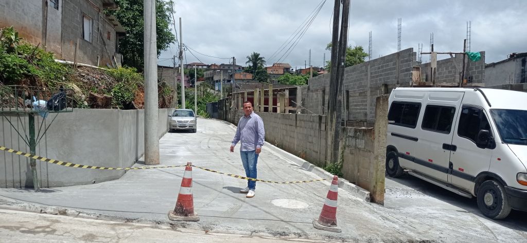 Nesta sexta-feira, 12 de novembro o prefeito Sidinei Ribeiro foi visitar a obra de pavimentação de concreto que foi concluída na Viela Douglas Miguel Muniz, no bairro Inhunguvira pelo Departamento de Planejamento Urbano da Prefeitura de Cajati.