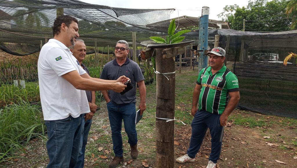No viveiro, o vice-prefeito, o engenheiro agrônomo de Cajati e o presidente AAGFAM tiveram a oportunidade de conhecer um dos responsáveis pela produção de mudas, Ezequiel dos Santos e que, apesar de estar gozando de férias, fez questão de acompanhar a visita. Conheceram também o funcionário de campo Carlos Rodrigues- o ‘Carlinhos da Justina’, que atua como a principal ponte de ligação entre os agricultores e os técnicos da prefeitura da Barra do Turvo.
