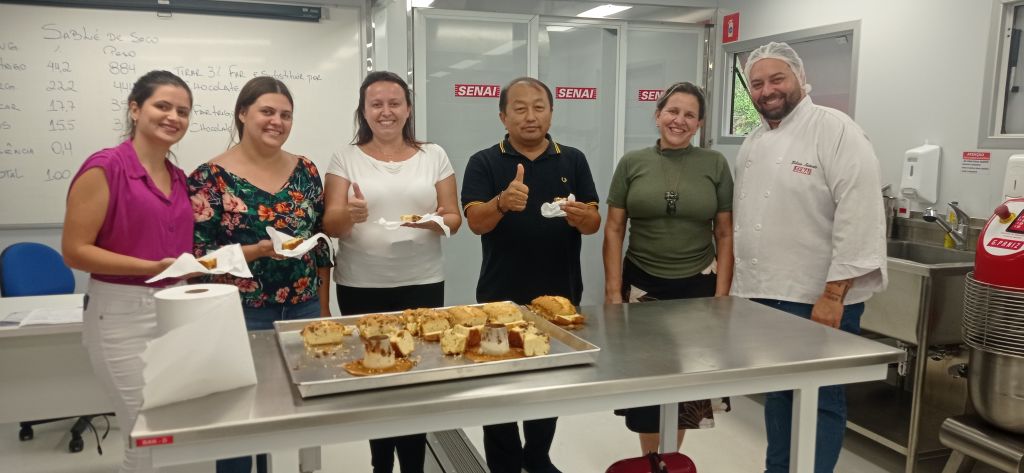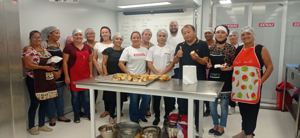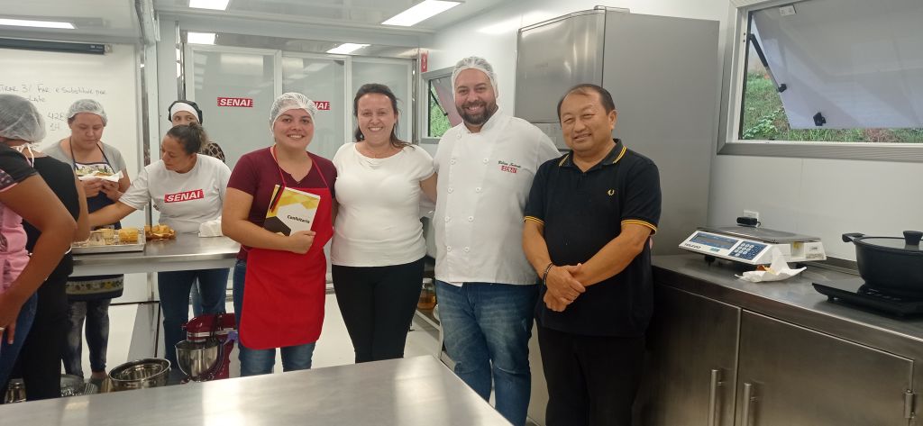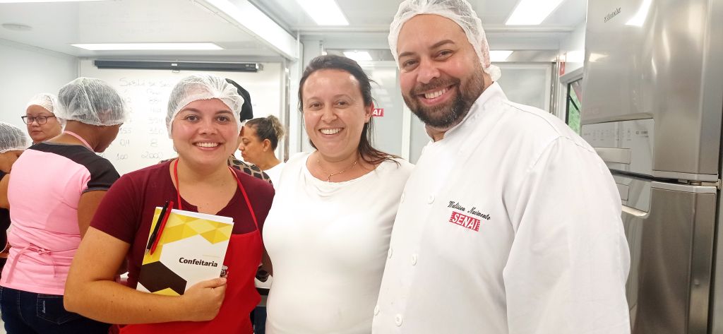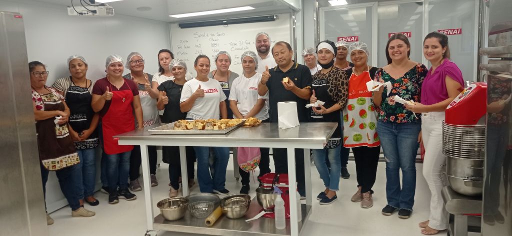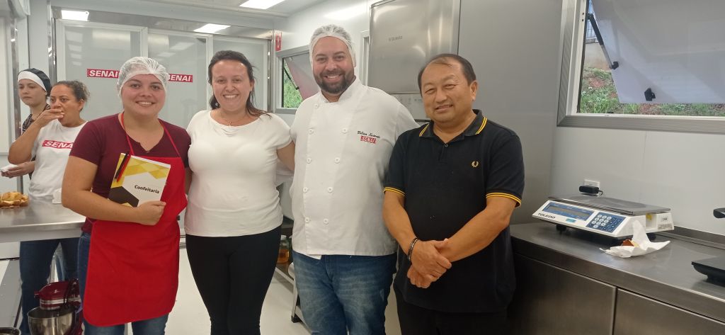 O prefeito Luiz Henrique visitou a aula prática do curso de Padeiro(a) e Confeiteiro (a) do SENAI que está sendo realizado na carreta estacionada no Departamento de Educação e Cultura da Prefeitura de Cajati.