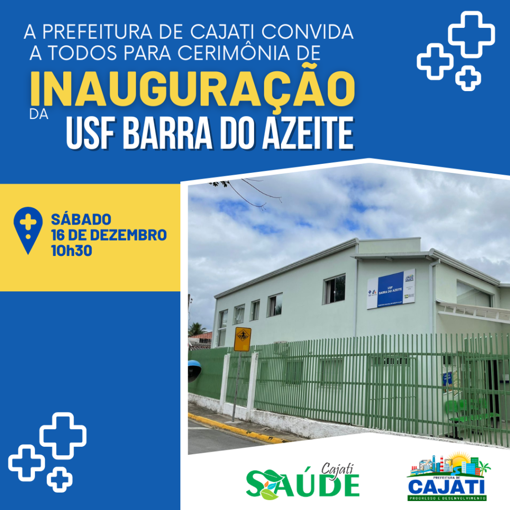Marque na sua agenda, sábado dia 16 de dezembro, às 10h30 acontecerá a Inauguração da USF Barra do Azeite. Imperdível!
