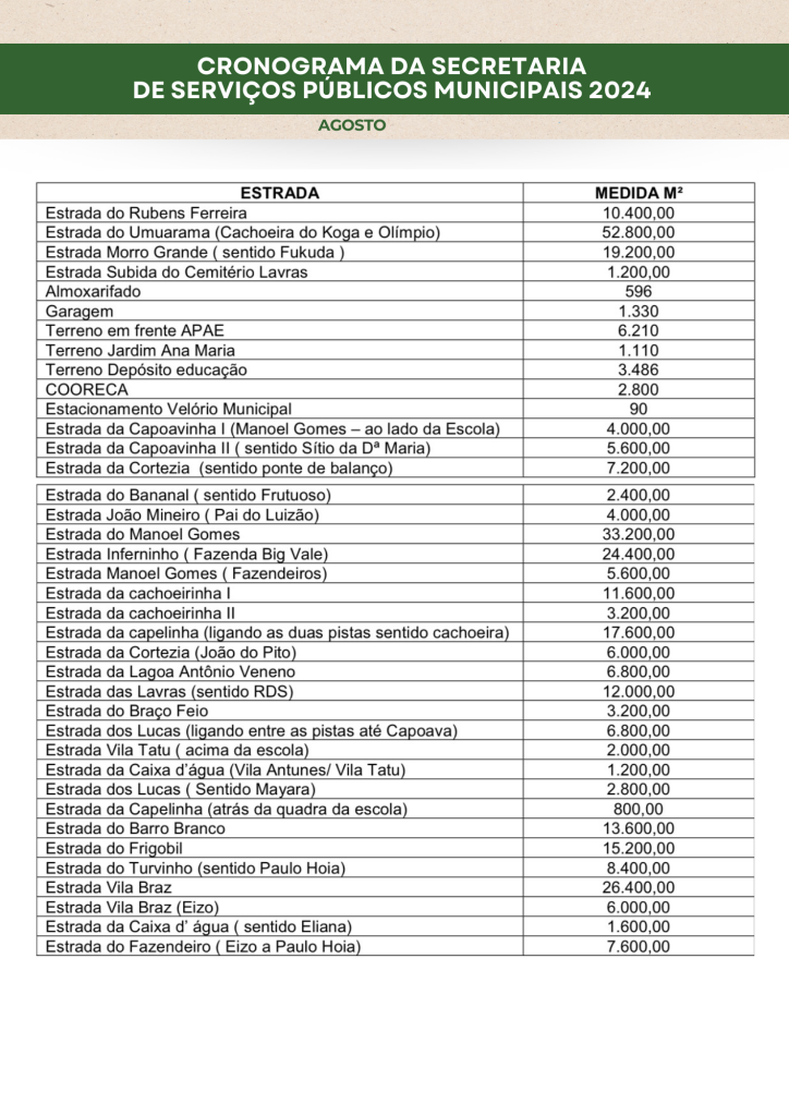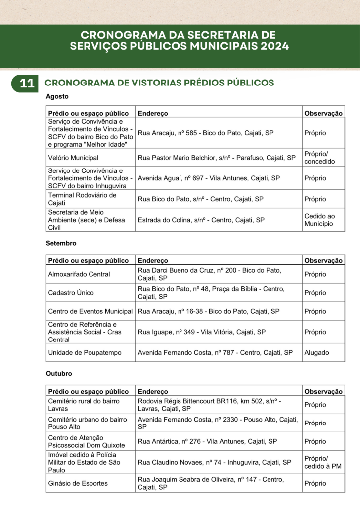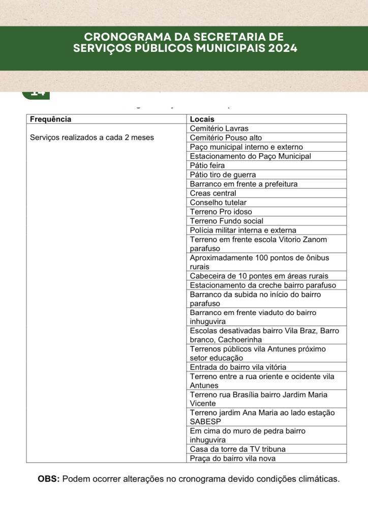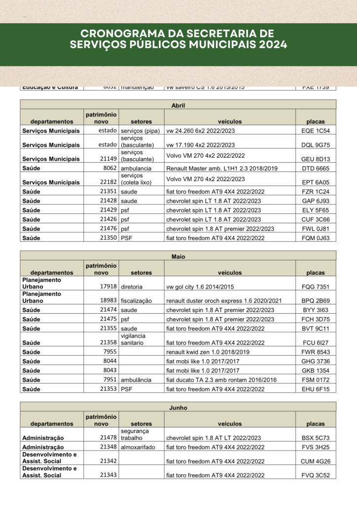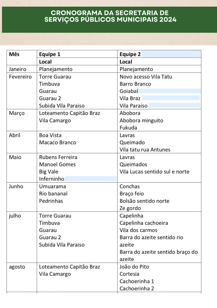 Planejamento da Secretaria de Serviços Públicos 2024