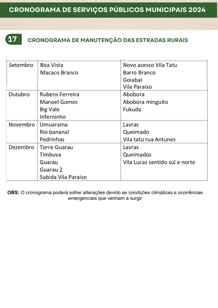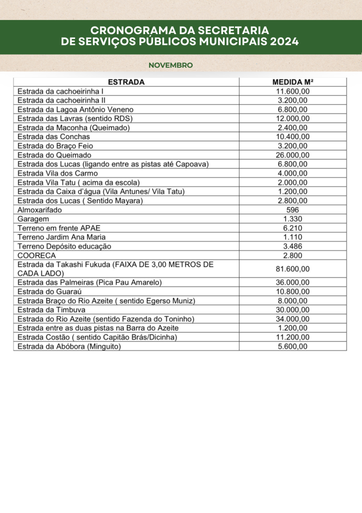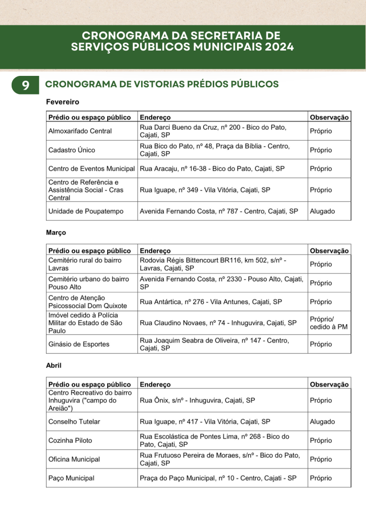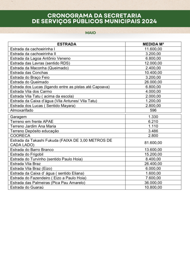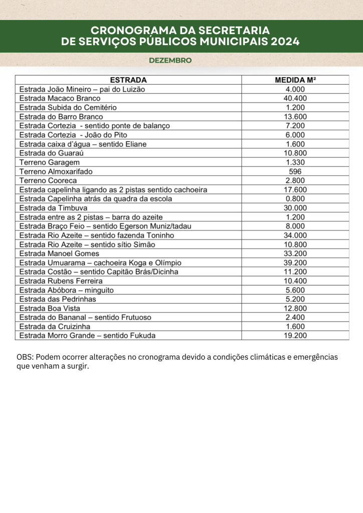 Planejamento da Secretaria de Serviços Públicos 2024