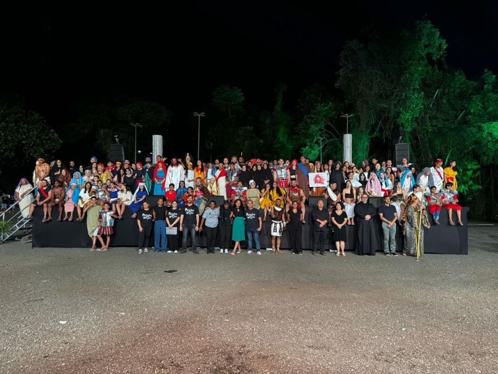 O elenco contou com mais de 130 personagens amadores e voluntários, que se empenharam em retratar a real história da vida, morte e ressurreição de Jesus Cristo.