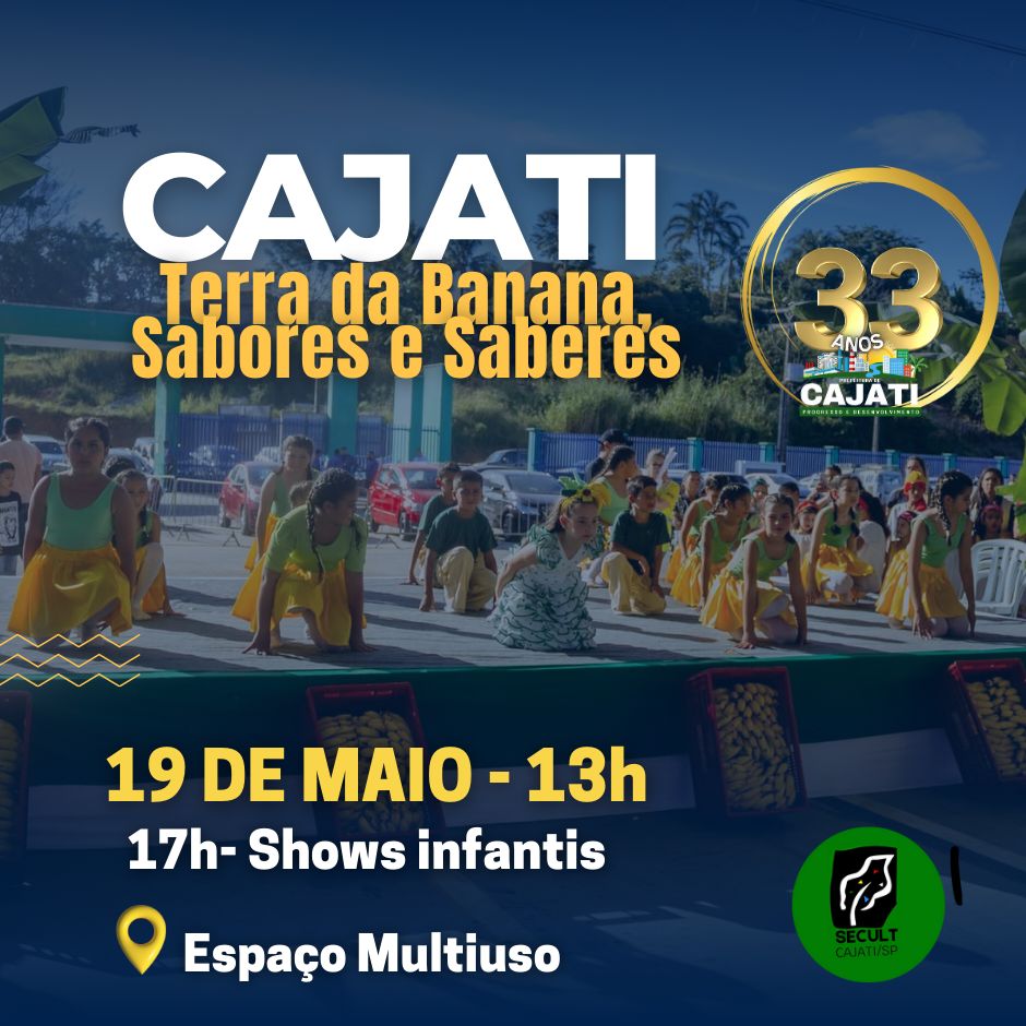 Acesse as notícia: https://www.cajati.sp.gov.br/noticia/5138/cajati-33-anos-festa-da-banana-sabores-e-saberes/