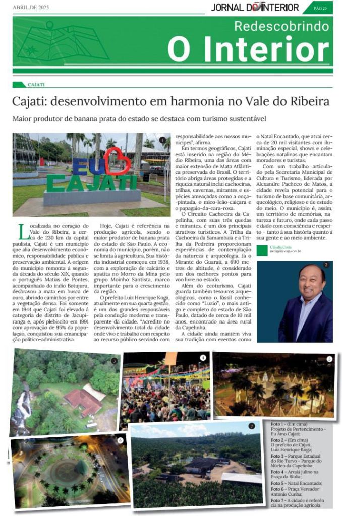 Cajati é destaque na UVESP - Interior sob o tema “Maior produtor de banana prata do Estado de São Paulo se destaca com turismo sustentável” Cajati mostra sua força e potencial econômico.