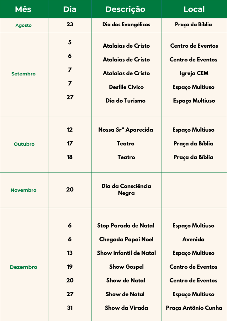 PREVISÃO DE CALENDÁRIO DE EVENTOS 2025