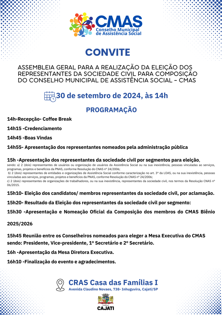 ASSEMBLEIA GERAL PARA A REALIZAÇÃO DA ELEIÇÃO DOS REPRESENTANTES DA SOCIEDADE CIVIL PARA COMPOSIÇÃO DO CMAS